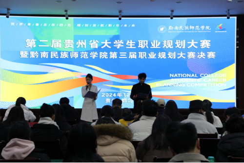 2024年12月15日,由黔南民族师范学院历史与民族学院承办的第二届贵州省大学生职业规划大赛暨黔南民族师范学院第三届职业规划大赛就业赛道决赛在行政楼一楼东报告厅隆重举行。此次活动是我校加强高校生涯教育和就业指导、增强大学生生涯规划意识、促进高校毕业生高质量充分就业的又一次重要行动。经过各二级学院层层选拨,最终25名选手以优异成绩脱颖而出参加此次校级决赛。