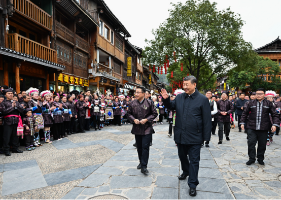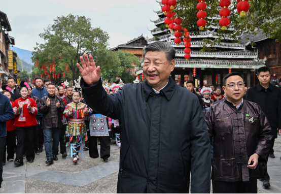 从鼓楼起身,村民们纷纷簇拥过来,热烈鼓掌,高声向总书记问好。习近平高兴地回应说,侗族人民朴实、勤劳、有文化、有智慧,希望大家在中国式现代化进程中把乡村振兴搞得更好,祝愿大家的日子越过越红火。离开侗寨时,侗族群众深情地唱起《侗歌声声唱给党》,表达对总书记的热爱和依依不舍。习近平频频挥手,同乡亲们道别。