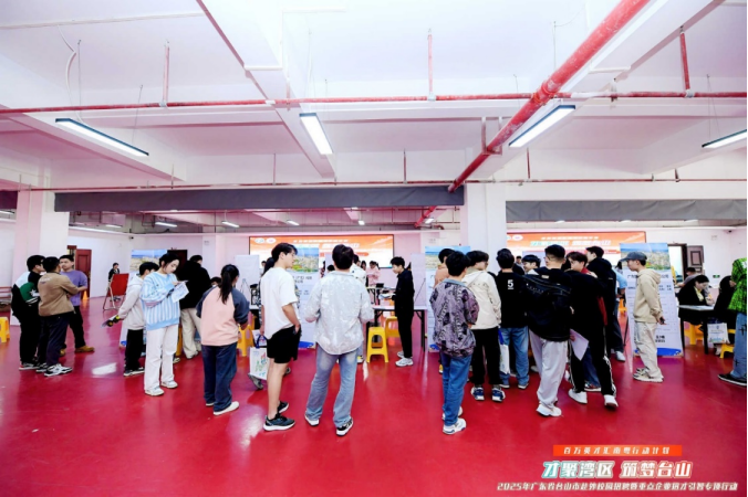 为深化校地企合作,助力粤港澳大湾区建设,2025年3月26日,台山市人力资源和社会保障局组织开展“百万英才汇南粤行动计划——魅力侨乡 就在台山”校园招聘活动在学校成功举办。作为2025年广东省台山市赴外校园招聘暨重点企业招才引智专顶行动的重要组成部分,本次活动吸引广东松田科技股份有限公司、台山市精诚达电路有限公司、江门容川饲料有限公司等10家优质企业参与。