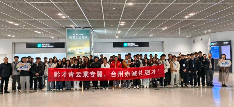 11月12日下午,64名贵州籍高校师生搭乘航班顺利抵达台州,准备参加13日举行的“职引未来 就在台州”2025年全国城市巡回招聘台州站(民营经济专场)暨外贸人才交流会。