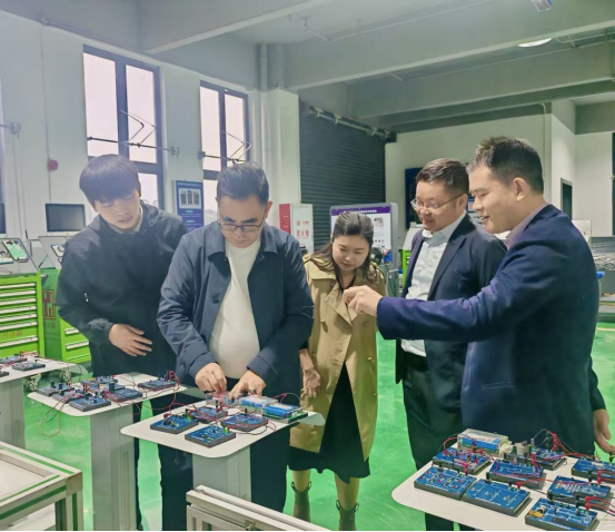 11月19日下午,代表团抵达广东银谷科技。该公司业务覆盖工业电气自动化、智能制造等多个领域,拥有丰富产业资源与人才需求储备。在企业负责人陪同下,代表团参观了生产研发基地与业务展示区,详细了解企业规模、技术优势及招聘需求。座谈中,双方围绕人才培养标准、岗位能力要求、学生实习就业安置等核心议题深入磋商,将通过常态化沟通实现企业需求与学生能力精准对接。